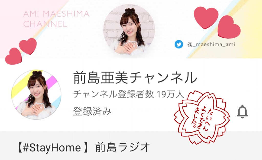 前島亜美さんのチャンネルは19万人を超える登録者数。
